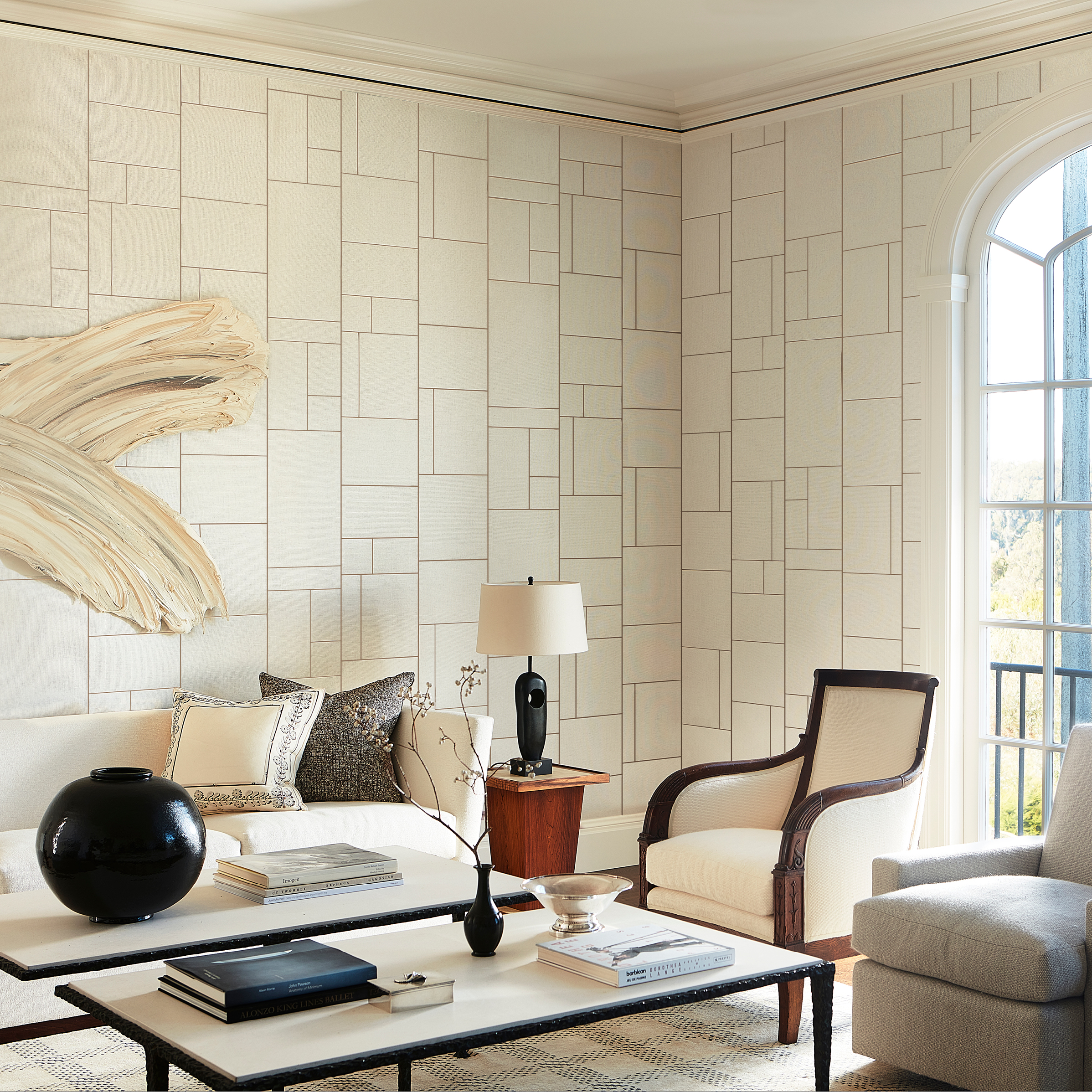 Framework – This sophisticated, yet soothing wallcovering is a contemporary nod to the traditional chogak bo or patchwork style of Korean Bojagi. Blocks of woven paper in varying sizes are hand-placed in a restrained linear architecture that can be custom arranged to create specific styles and ambiances.