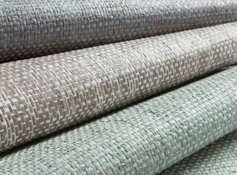 BEACHFRONT – At once relaxed and refined, Beachfront captures its namesake coastal feel. Artisan-loomed of textural raffia, its hand-painted fibers reveal variable brushstrokes for a laidback look. The colorized warp combined with whitewashed weft fibers in an open weave, creating a dimensional, sun-dappled appearance that recalls casual beach mats.