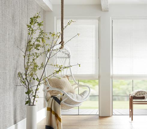 UNITY – Loomed of gently twisted strands of papyrus, Unity’s sumptuously soft texture is balanced by a double warp that delivers definition to the relaxed weave. The series features a diaphanous design that allows light to pass through, its airy look and peaceful color palette lending a Zen sensibility.