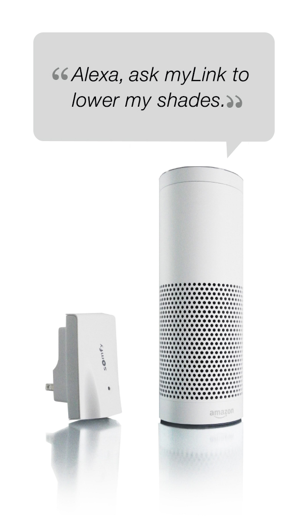 VOICE CONTROLLED SHADE OPERATION, THE SOMFY MY LINK™ IS NOW ALEXA-ENABLED.