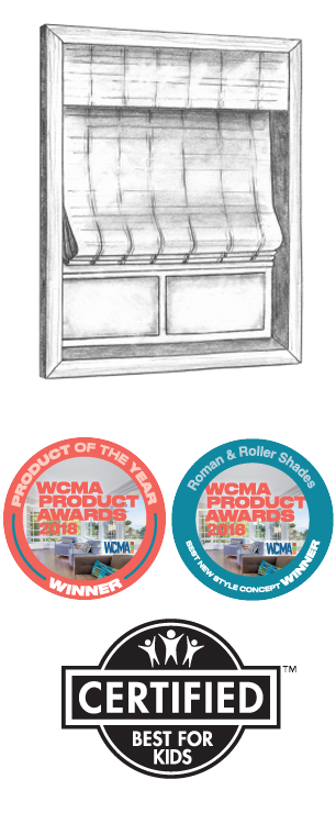 The Window Covering Manufacturers Association (WCMA) Product Awards recognizes the best product innovations, designs and merchandising programs in the windowcovering industry. With this innovative system, we are proud to be recognized as the 2018 WCMA Roman & Roller Shade Best New Style Concept and the 2018 Product of the Year.