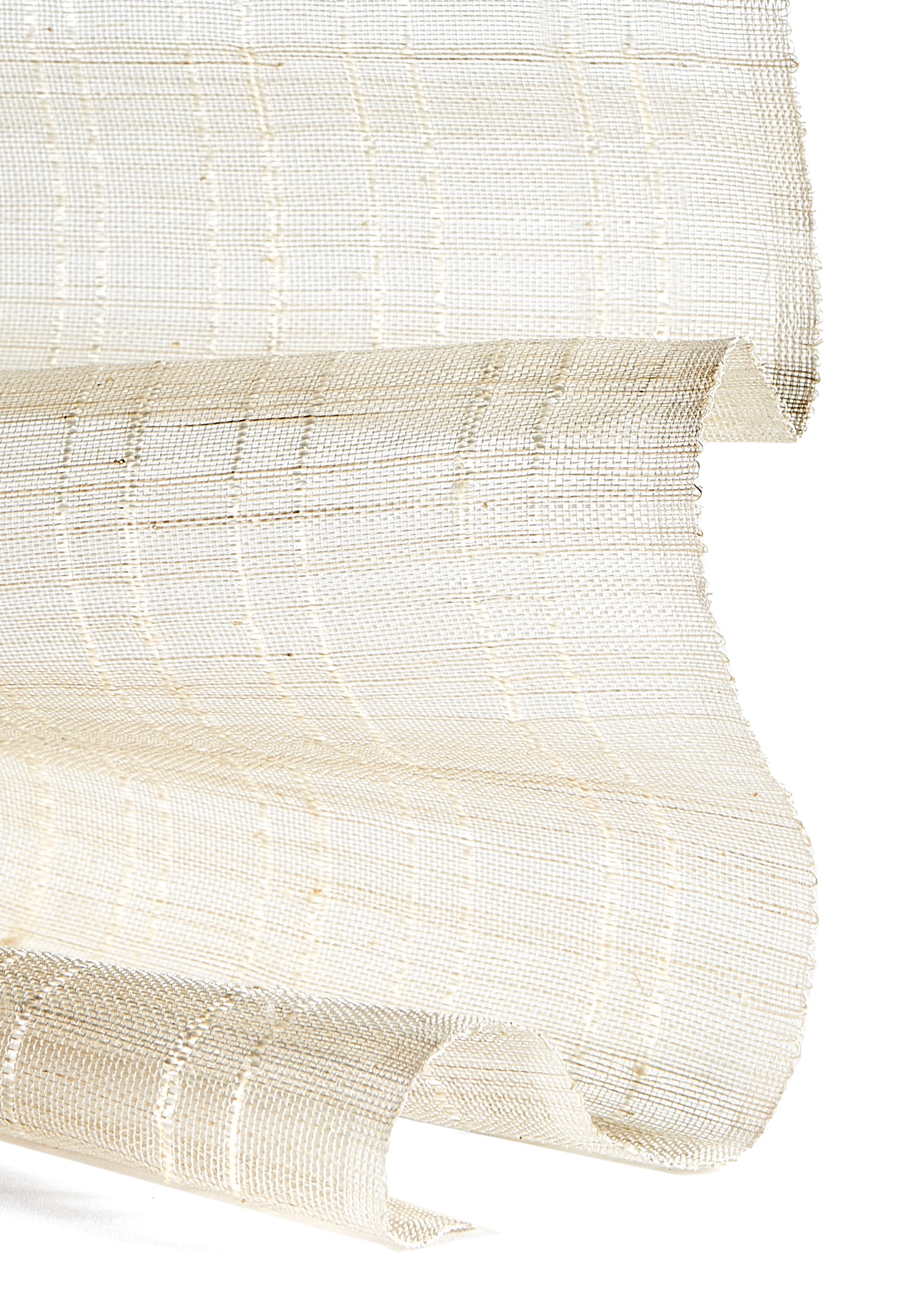 Natural beauty meets elegant refinement with this design hand-loomed from airy banana fiber. Lustrous ribbons stripe the delicate weave, lending textural dimension and a hint of glamour to the monochromatic composition.