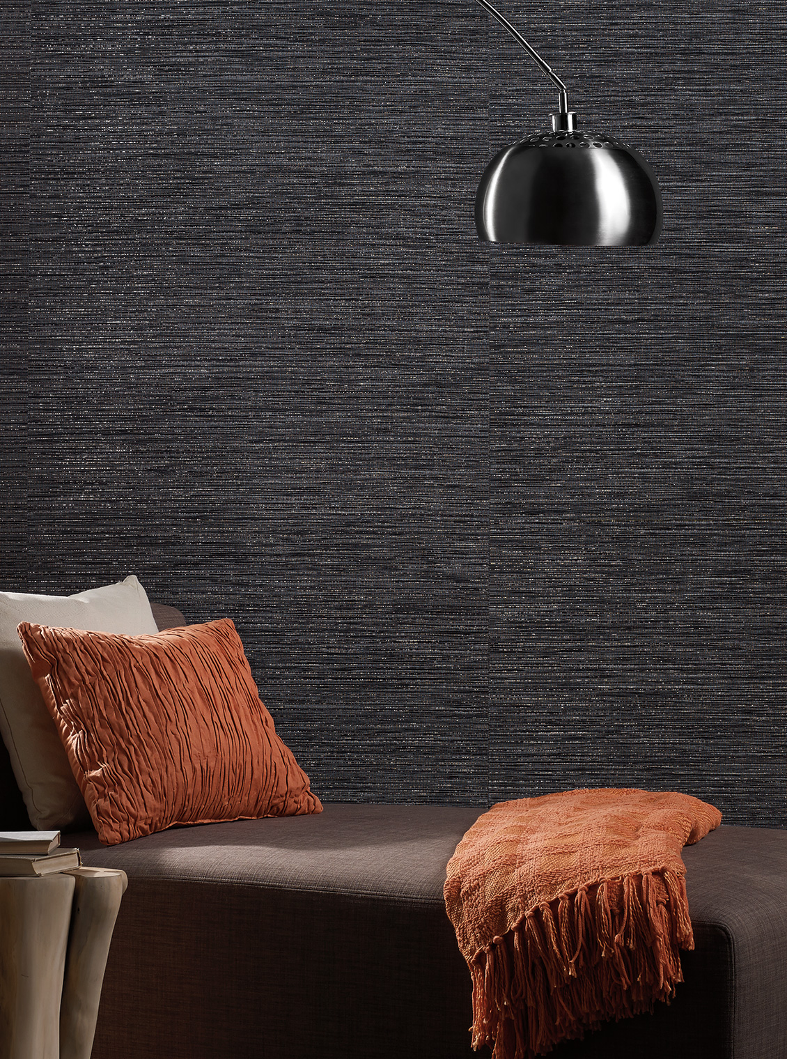 Renewable wood-pulp fibers are dyed, cut into strips and prepared for the loom. Then, they are carefully handwoven before being backed with paper.