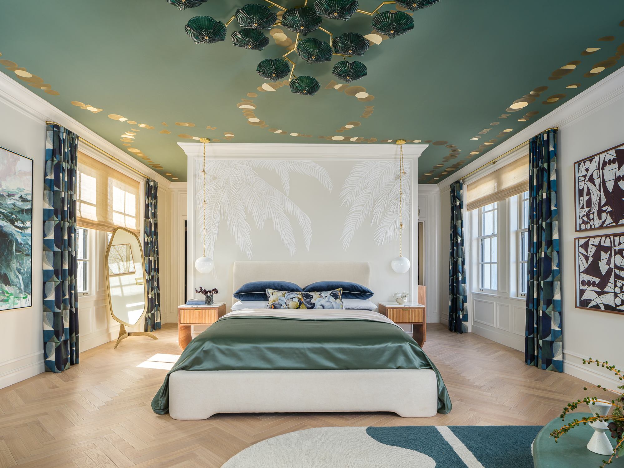 TT: The Primary Bedroom, “A Rare Gem,” pays tribute to humanity's long-standing love affair with gemstones and their ability to evoke beauty, wonder, and elegance. For millennia, humans have been drawn to the allure of gemstones, adorning themselves and their surroundings with these vibrant, colorful treasures. Taking inspiration from the extraordinary hues, life, and energy that gemstones possess, I created a sanctuary reminiscent of a luxurious jewelry box.