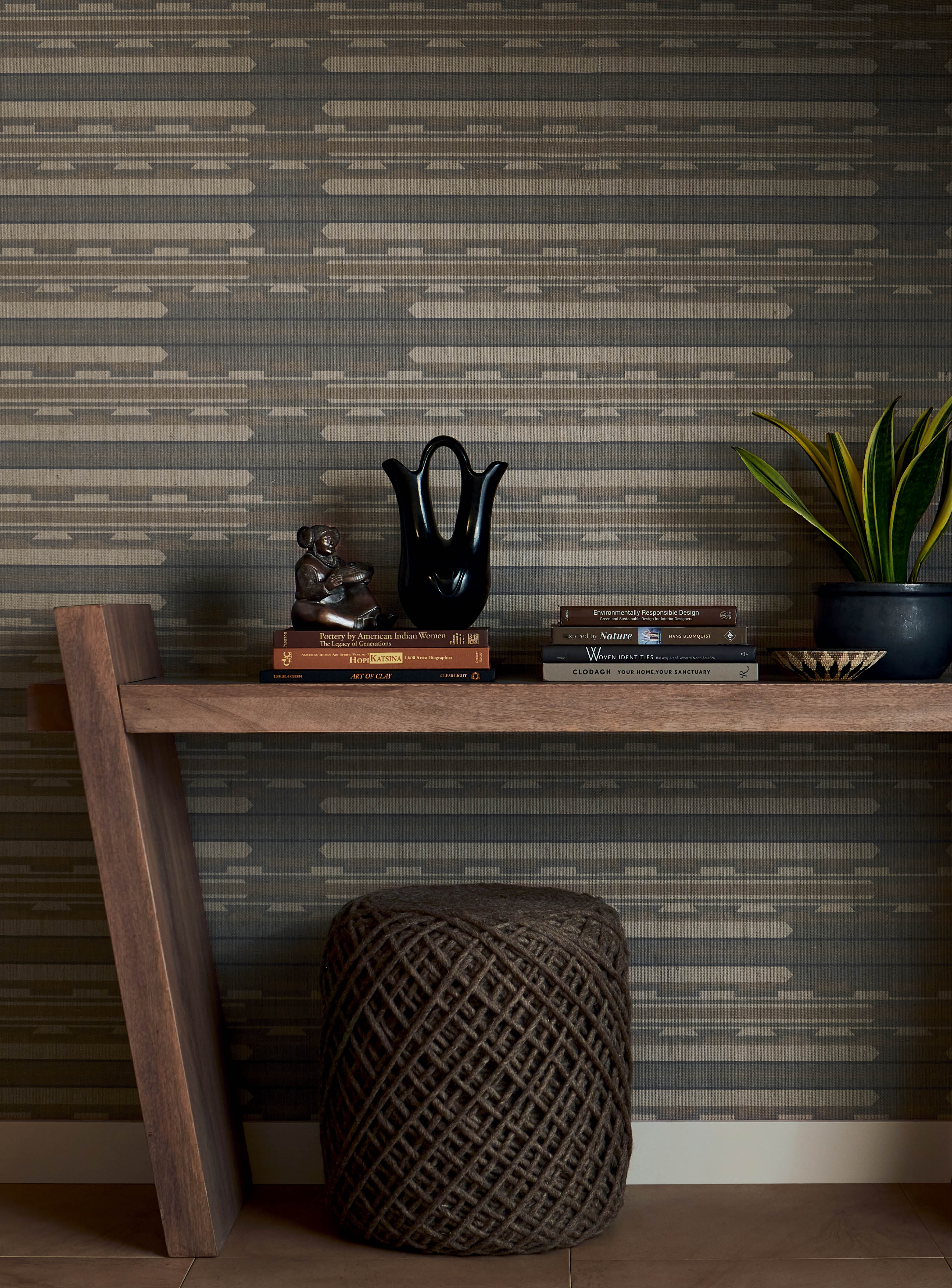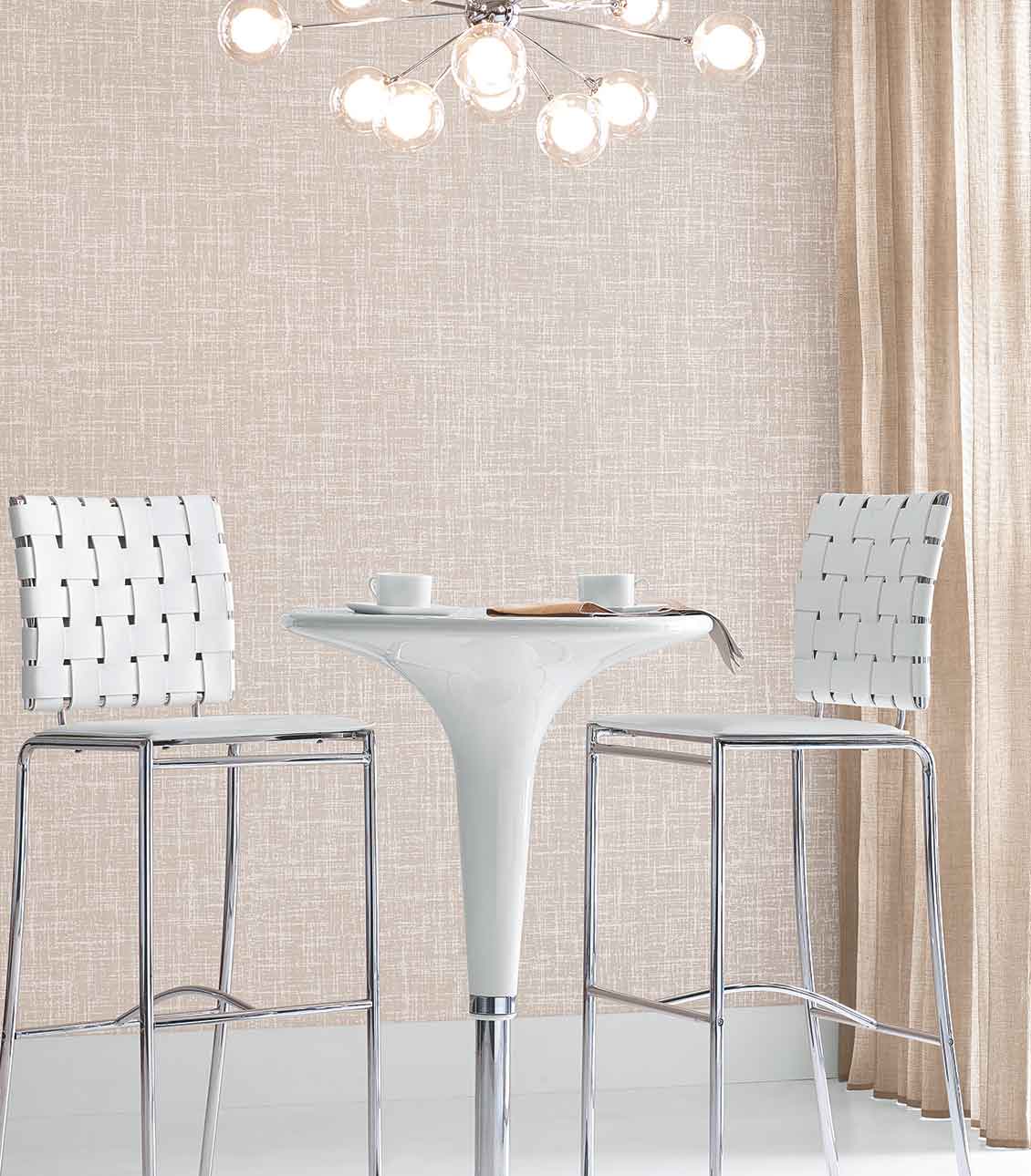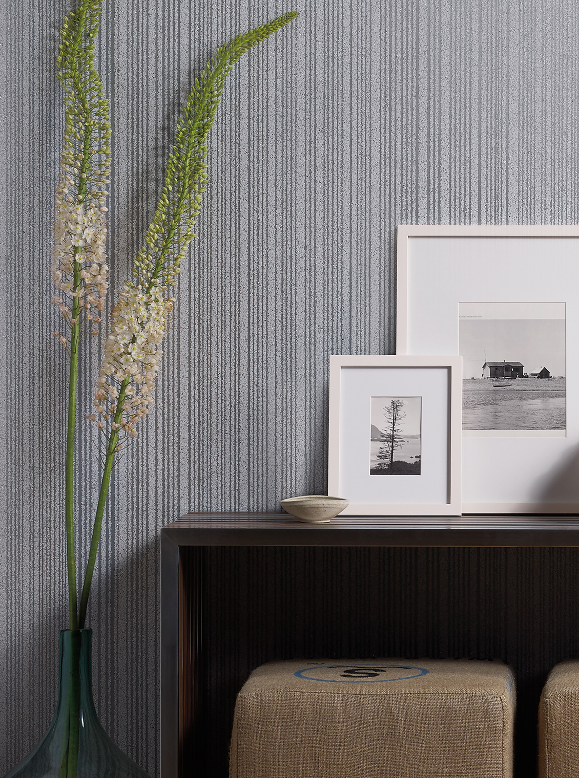 This refined wallcovering conveys the energy of urban construction. An abstract grid design is enlarged, rotary printed, then a thin layer of linen delicately hand-applied to soften the effect. The result is a seamless backdrop that adds an element of the unexpected.