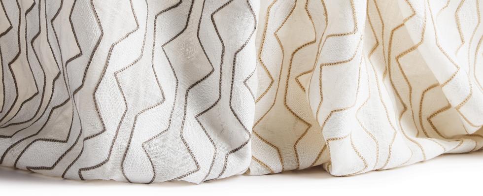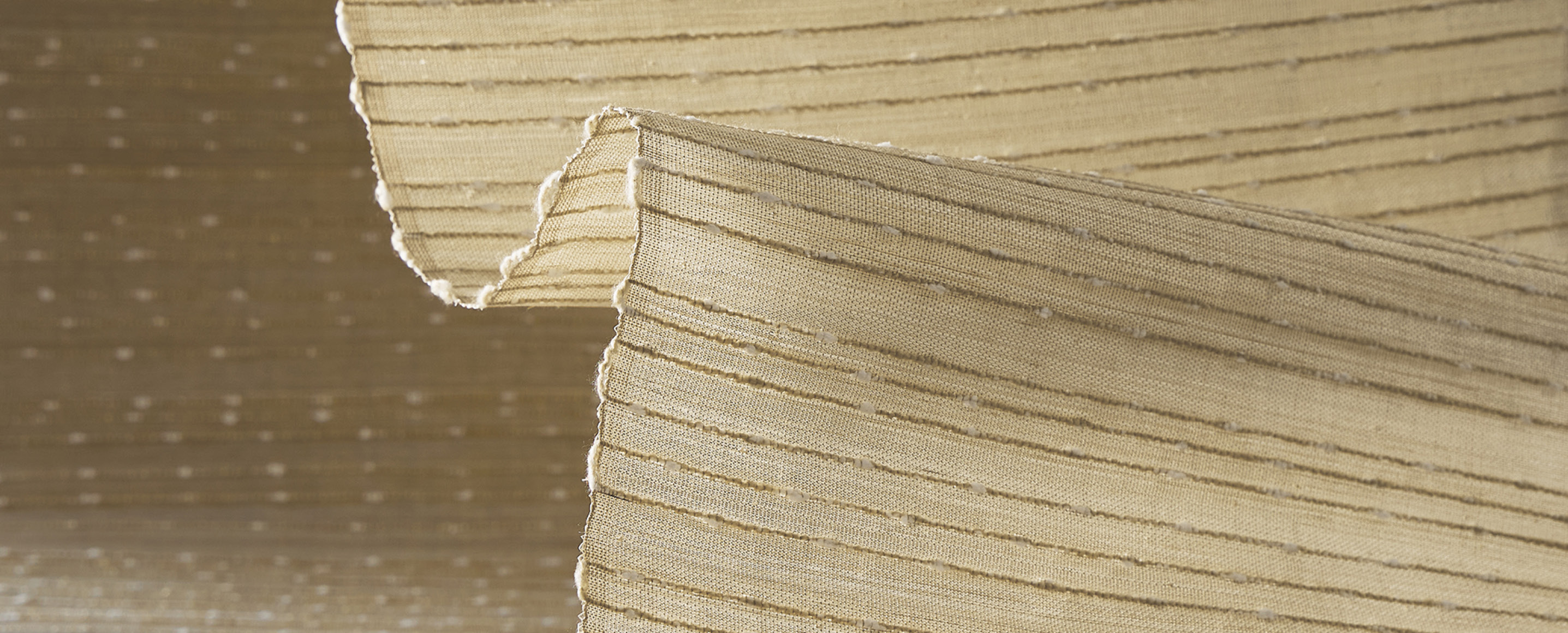 Like the vertical rise of ancient timber, Stria celebrates the beauty of the line. Fine, irregular streaks drift across a sheer linen ground, mimicking the natural grain of wood. It is a lyrical, fluid fabric that brings a sense of movement to the window.