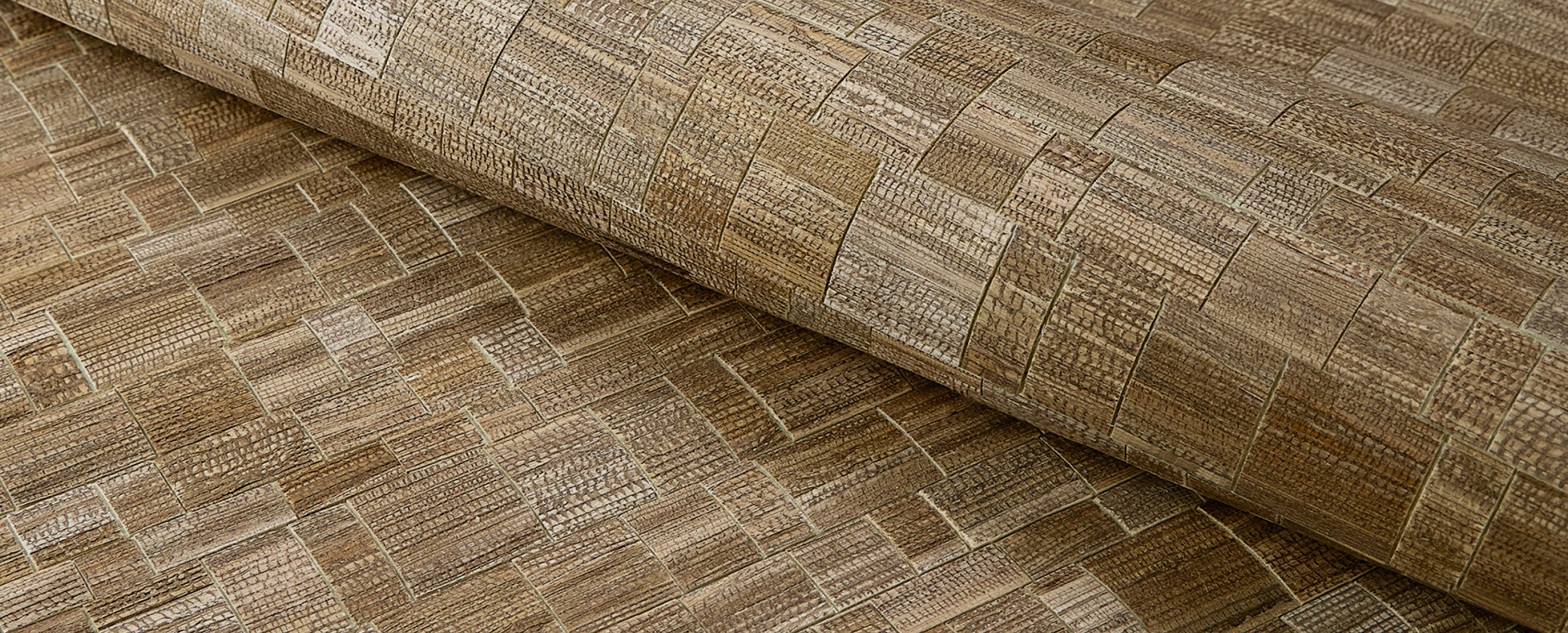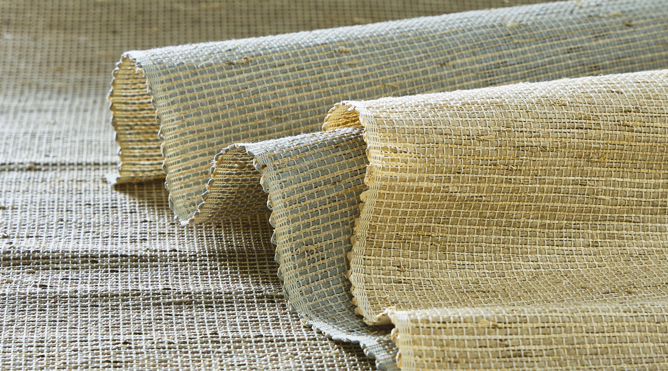 Woven with nature’s quiet intention, hand-placed vetiver roots stretch across tonal warp threads; rooted, fluid, and softly dimensional as light passes through. That movement continues on the wall in handwoven seagrass, evoking wide meadows in motion and creating an enveloping backdrop of organic calm.