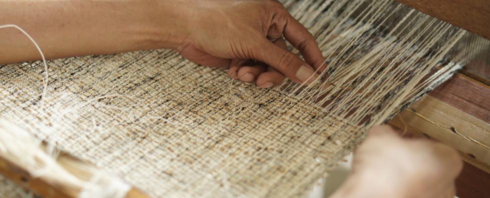 The primal essence of the terrain, hand-dyed banana stem creates a raw, hewn texture, recalling the ancient contours and protective strength of bark.