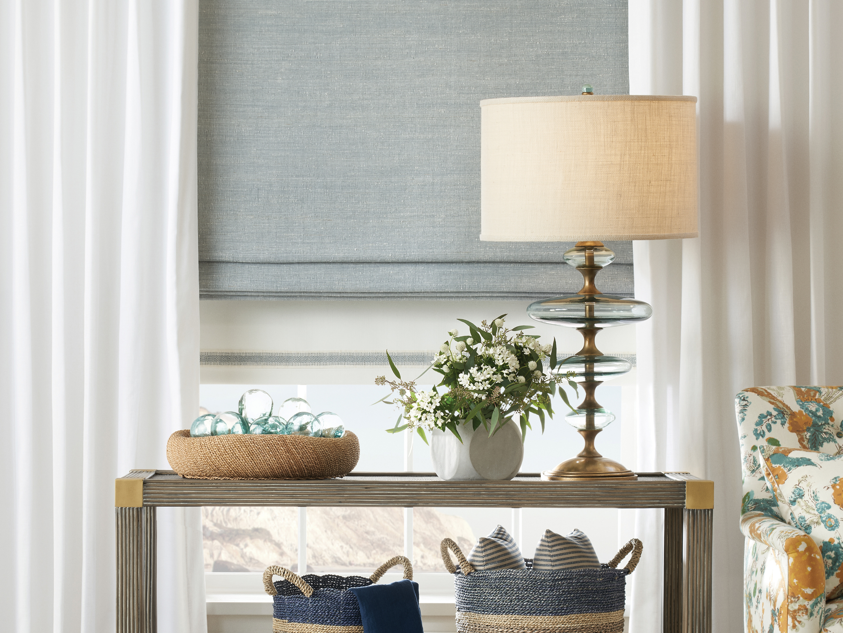 An array of roman and roller style shades, handcrafted of our Woven-to-Size and Tailored-to-Size weaves, provide options for any décor.