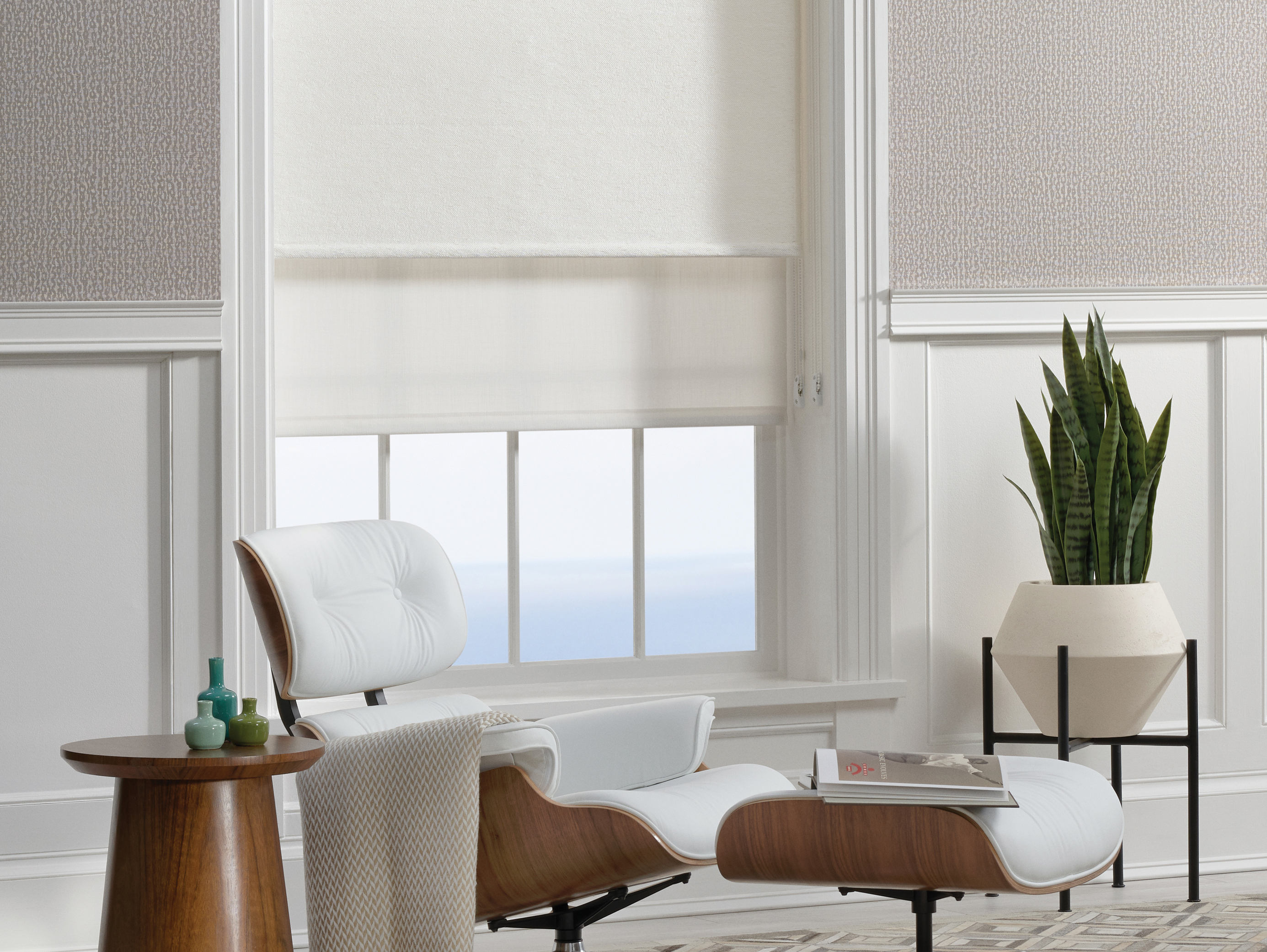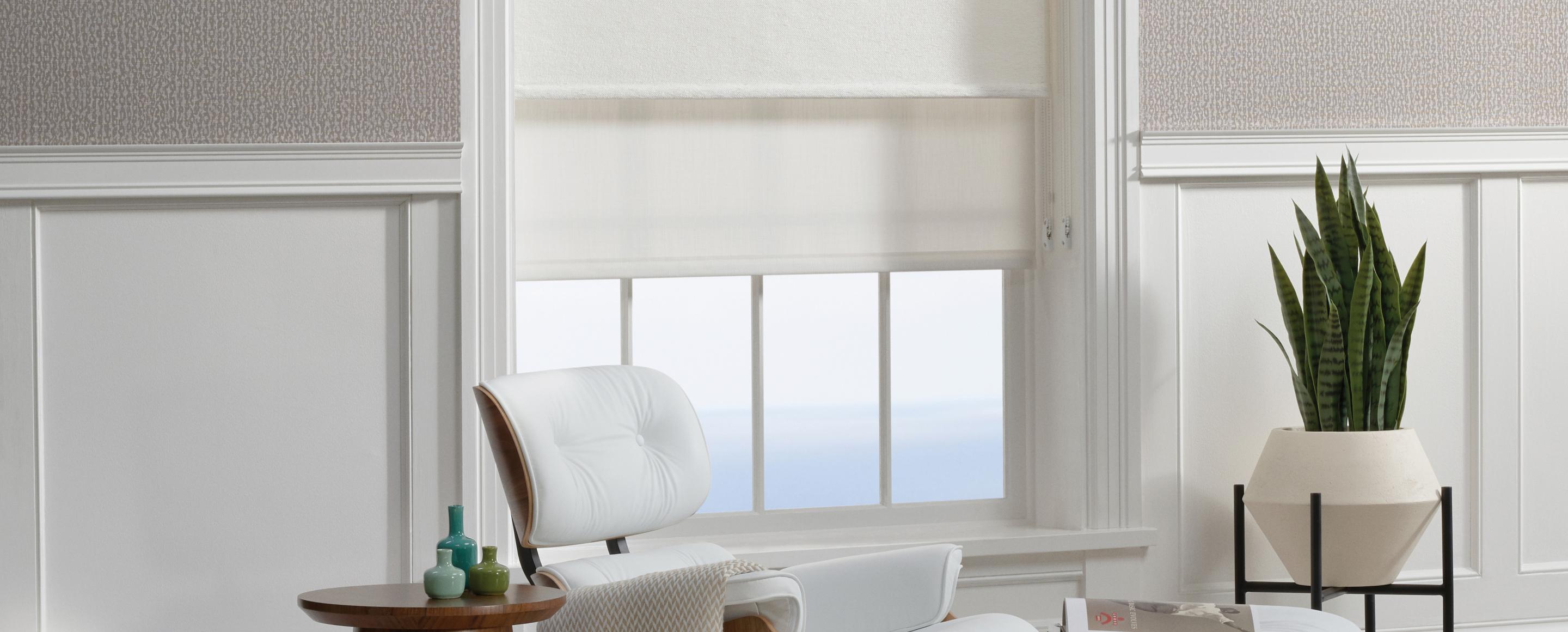 Architecturally simple, the contemporary rollershade style is both beautiful and highly functional. Rolls up for a minimalistic profile at the top of a window, or conceals within a valance or soffit structure.