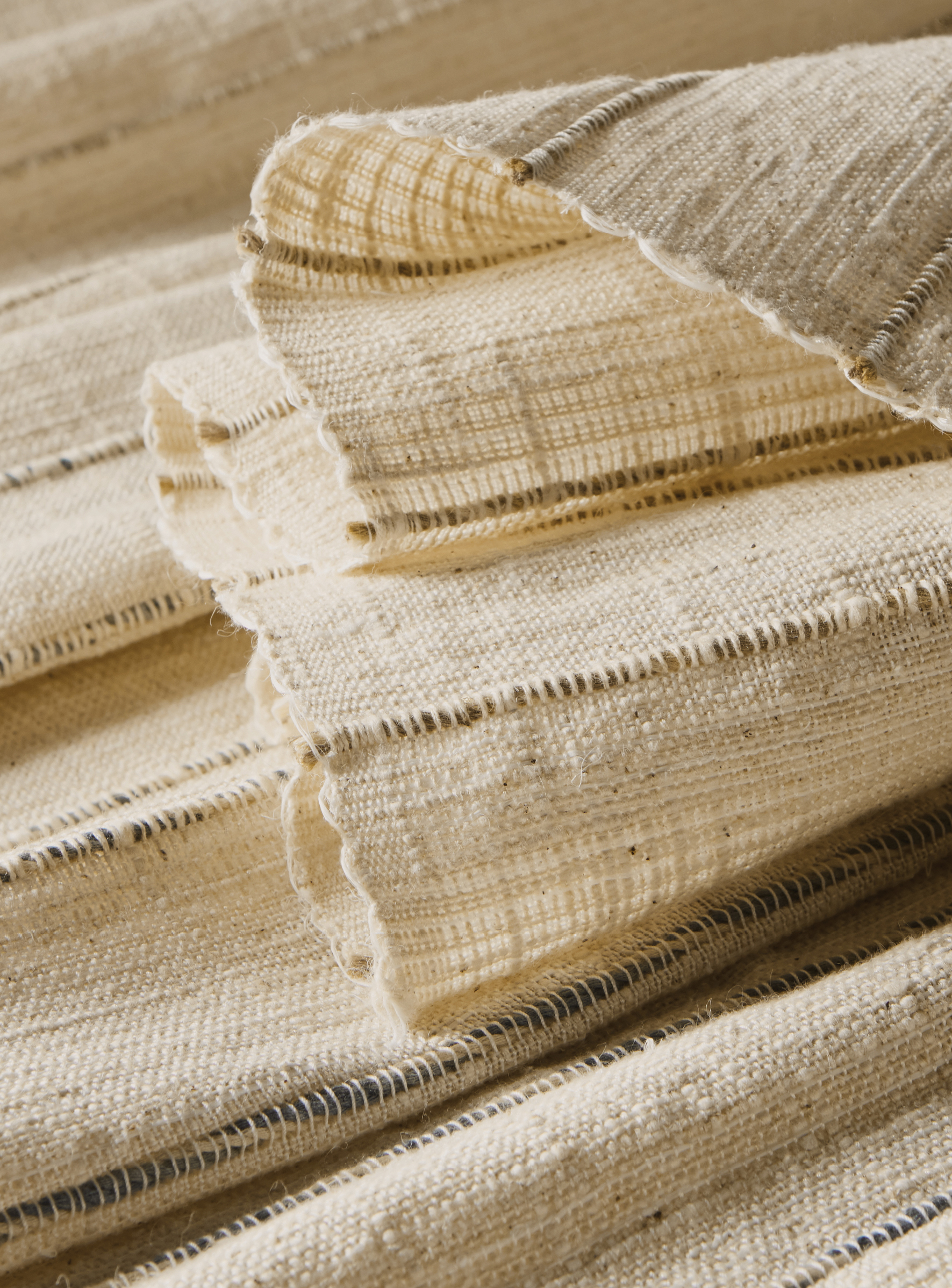 Corded French textiles inspired this transitional series by J. Randall Powers. Windsor’s tightly woven ramie ground is detailed with yarns that are individually twisted by hand into pencil lines. Their two-tone palette and horizontal relief offer a fresh take on a traditional striped design.