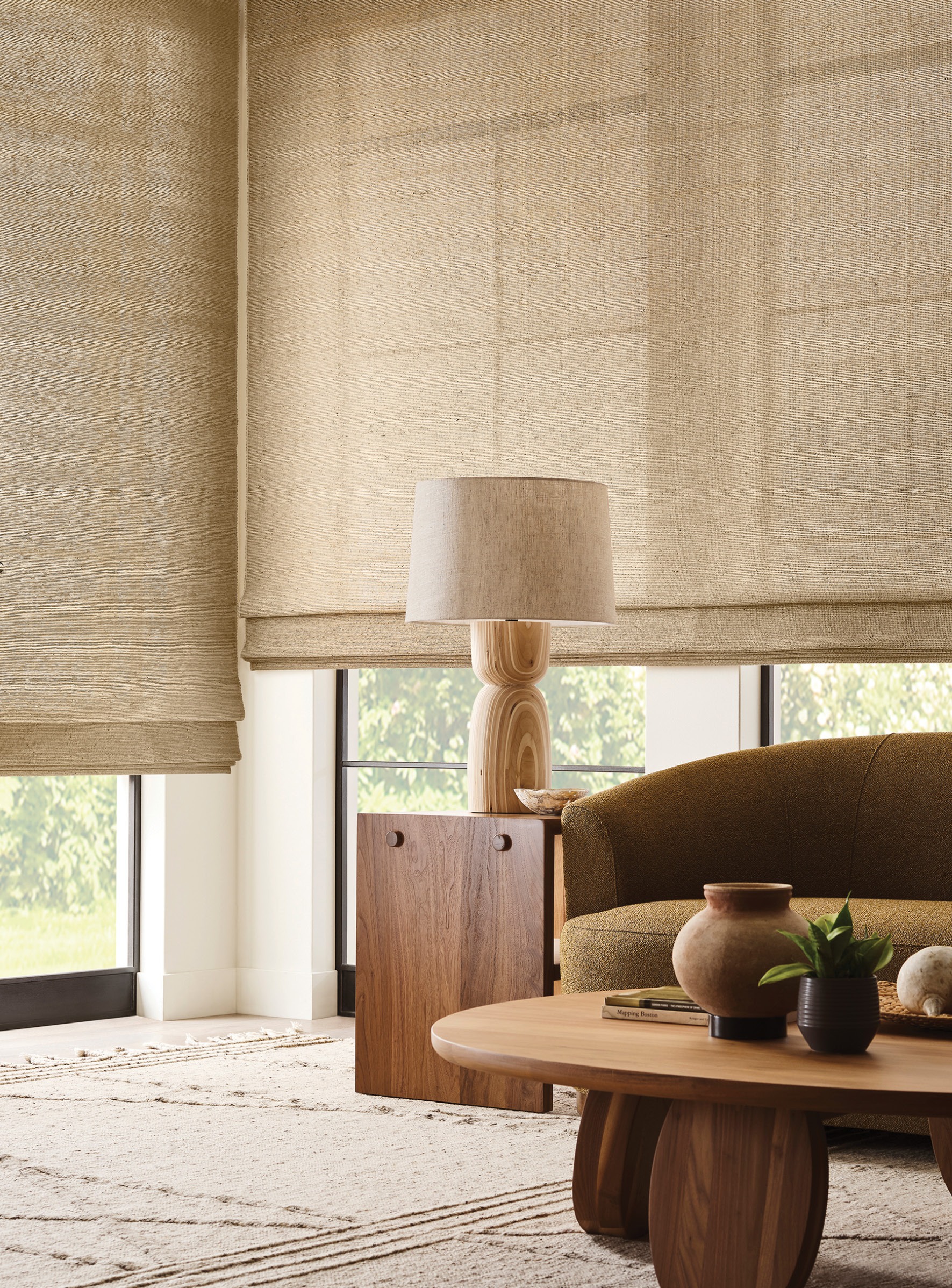 Lightweight and loosely structured, this weave filters sunlight without obscuring outside views. Delicate mottling makes the sun-bleached palette even more intriguing.